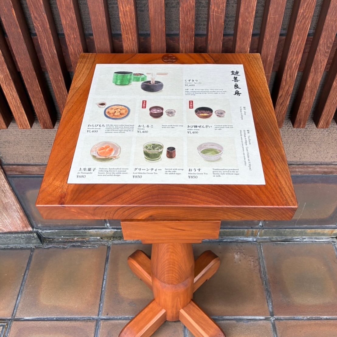その歴史や「鍵善」という名前に震えながらデザインしたメニュー表は店前で目にするメニュー表が様々な客層に効果的である必要があることから、風合いがありながら分かりやすいという機能も求められました。