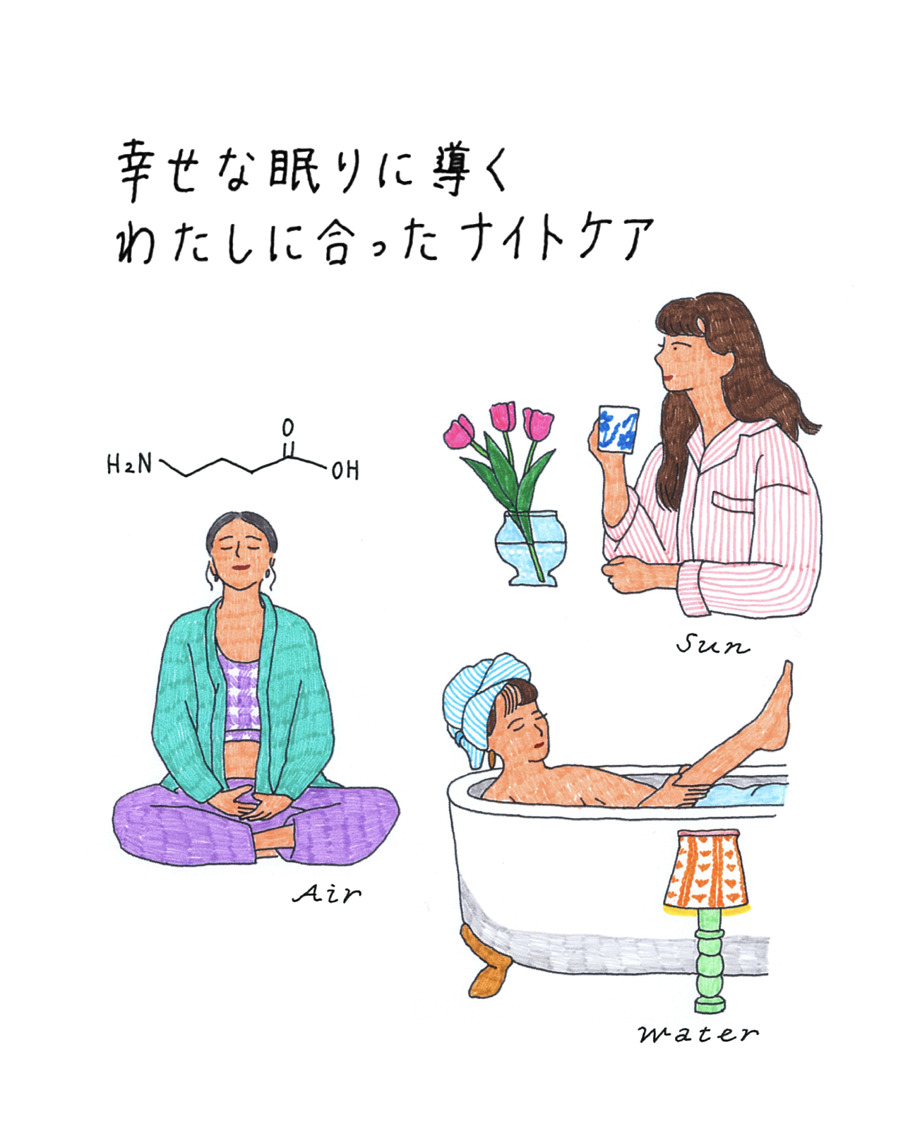 イラストは、ブランドの世界観に合わせ日常のシーンを丁寧に切り取った