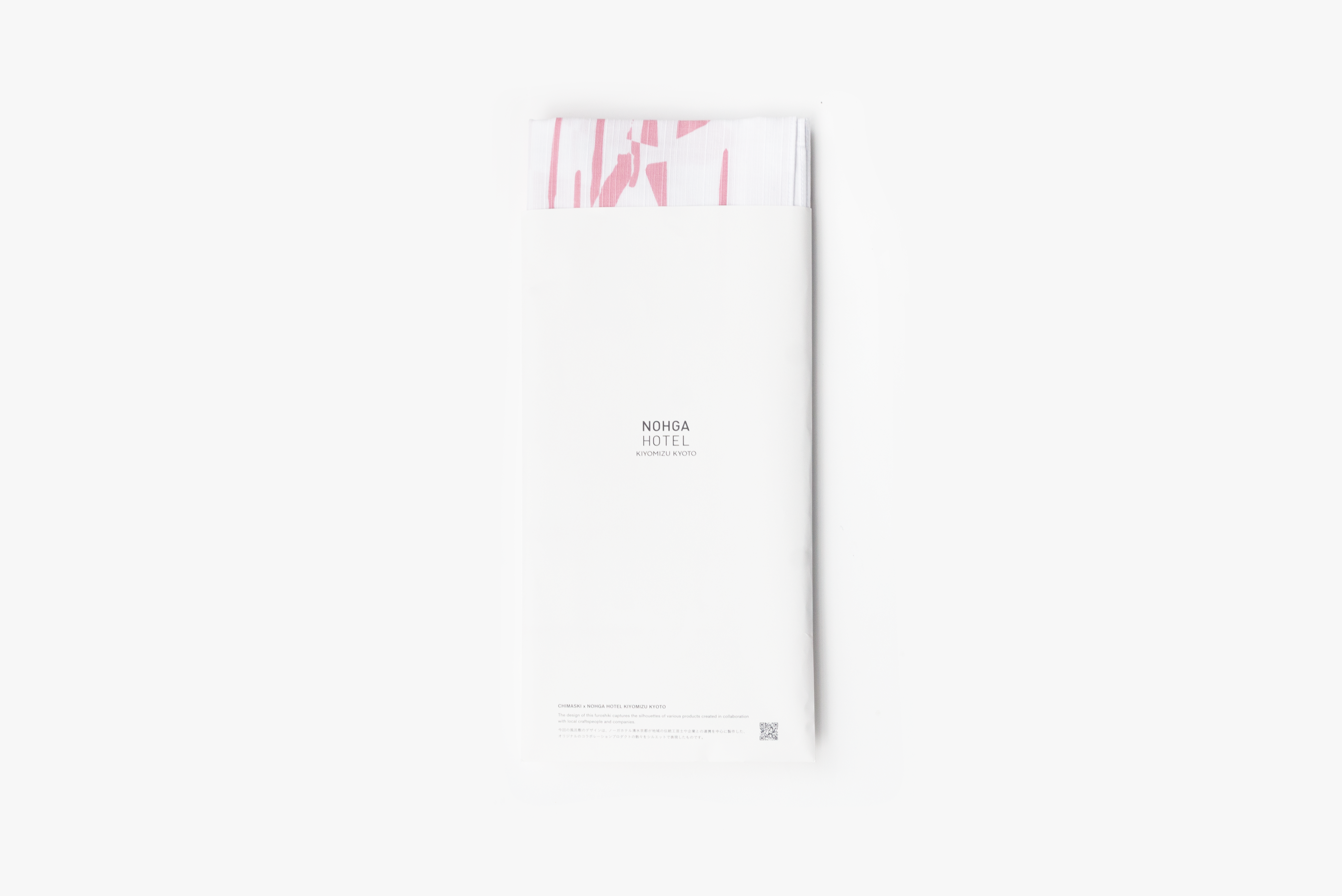 NOHGA HOTEL KIYOMIZU KYOTOは、近隣のアーティストや伝統工芸士、企業と連携し、オリジナルのコラボレーションプロダクトを展開している。そのプロダクトのシルエットで表現した風呂敷とあわせて、封筒のデザインも担当した。